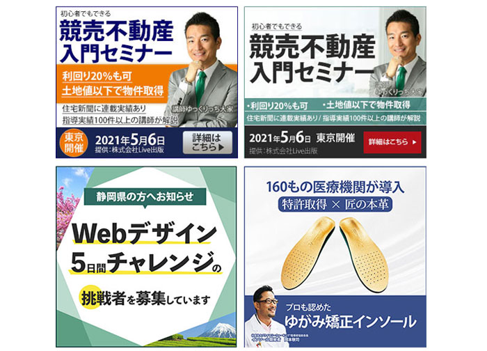 - 競売不動産のバナー■ターゲット:競売不動産に興味がある 40-50代男性 ■目的:広告用バナー(新規向け) ■作成の意図:ターゲッ… 続きを読む: 競売不動産のバナー