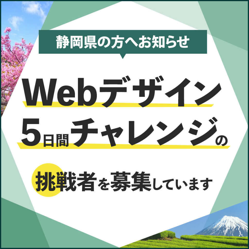 ■制作の意図:こちらは「富士山」と「お茶畑」の写真を配置し、視覚での訴え方を意識して作成しました。ターゲットに向けた挑戦者募集という事で、挑戦者に目線が行くように黒文字の下に意識して黄色を配色しました。